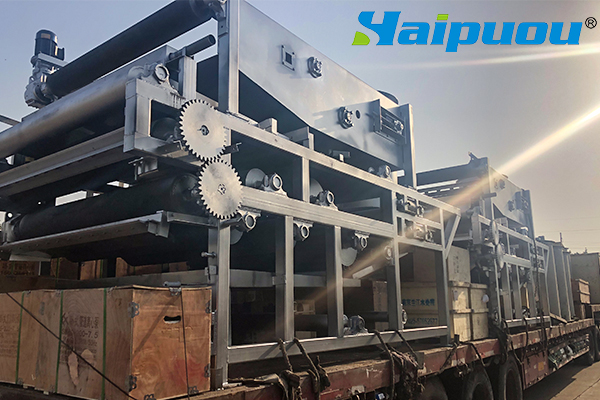 海普歐帶式壓濾機的構(gòu)造緊湊、式樣新穎、操作管理方便,處理能力大、濾餅含水率低,效果好。它與同類型設(shè)備相比,具有以下特點: