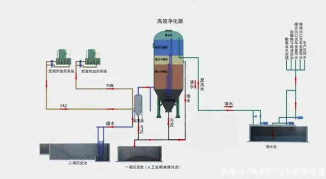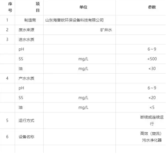 在高懸浮物污水處理中,HPO-XL型高效污水凈化器顯示了較大的技術(shù)優(yōu)勢。它無須設(shè)置預(yù)沉池,可以快速連續(xù)高效地將 SS≤5000mg/L 的污水凈化到 5~30mg/L,該技術(shù)最高可以處理 SS≤10000mg/L 的污水,為高濃度含煤污水、灰渣水、礦井污水、砂石骨料沖洗污水、施工污水、高懸浮物污水處理開辟了一條新途徑。